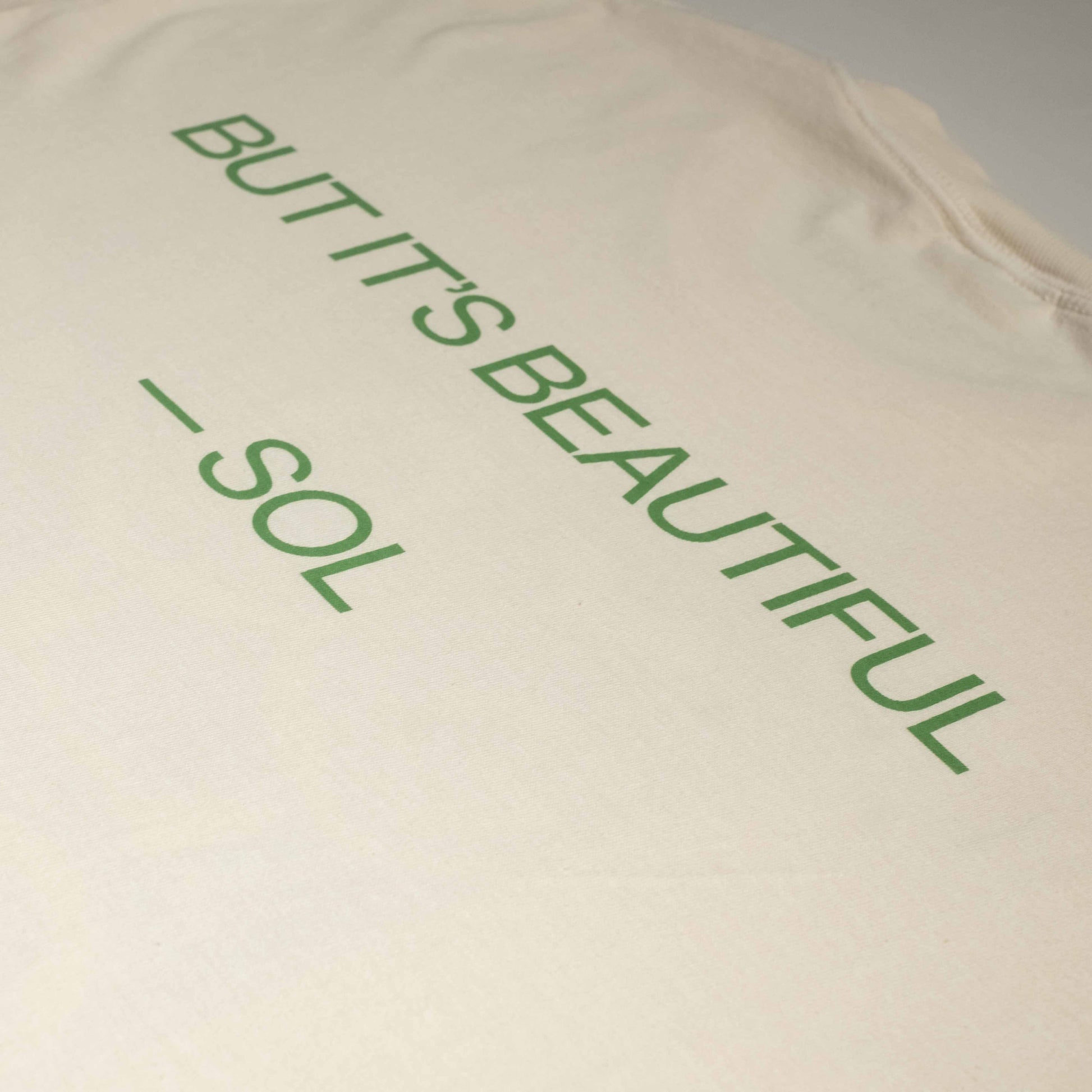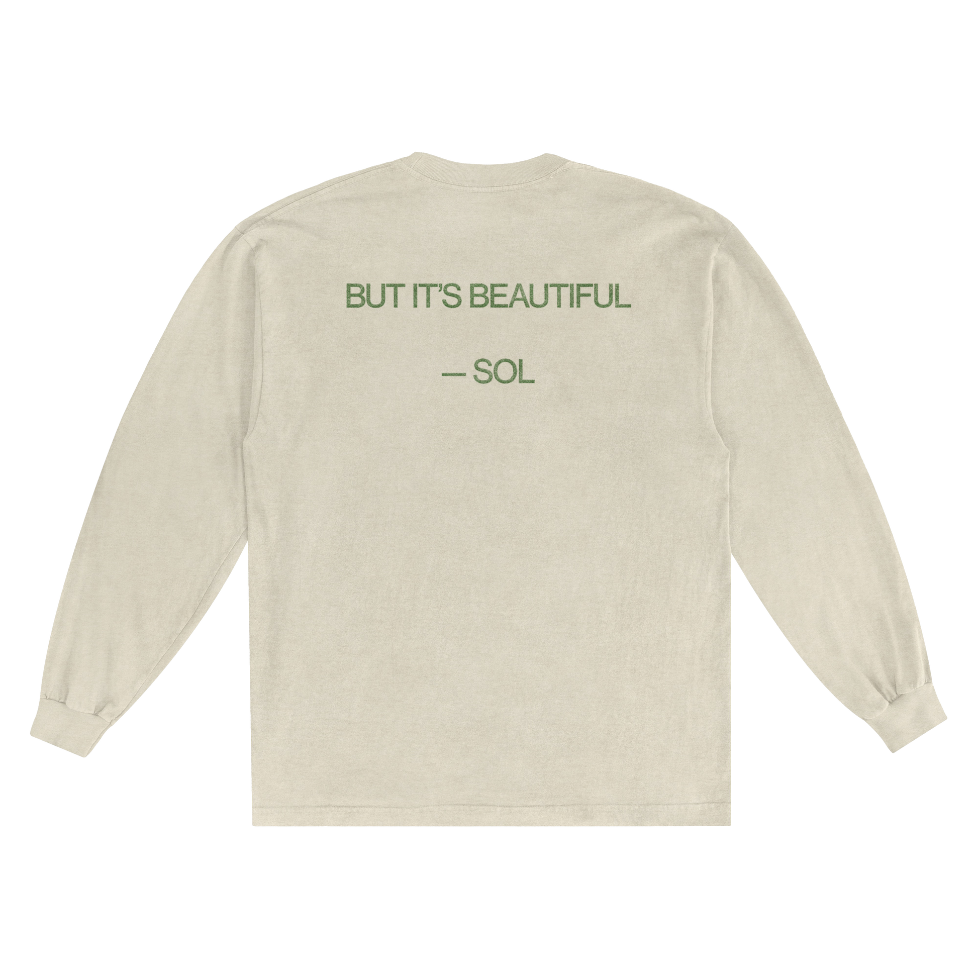 Super soft low solids water based screen print ink on 100% cotton Comfort Colors ivory colored long sleeve shirt.